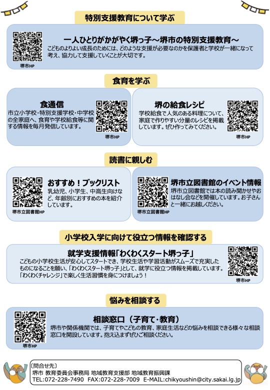 • 堺市教育委員会 家庭教育支援に関するチラシについて